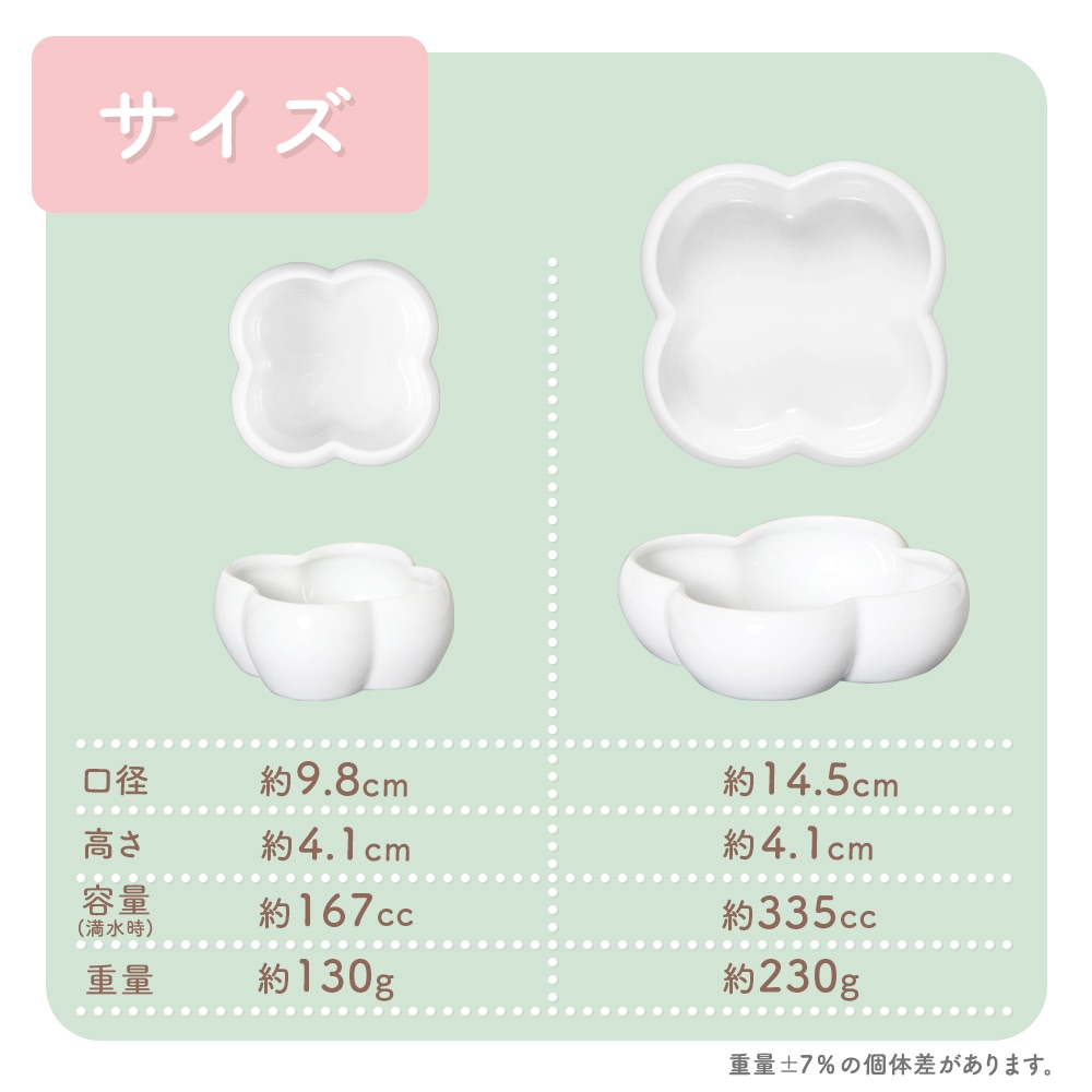 | サイズ | 【9.8cm】 口径:約9.8cm 高さ:約4.1cm 容量:約167cc 【14.5cm】 口径:約14.5cm 高さ:約4.1cm 容量:約335cc |